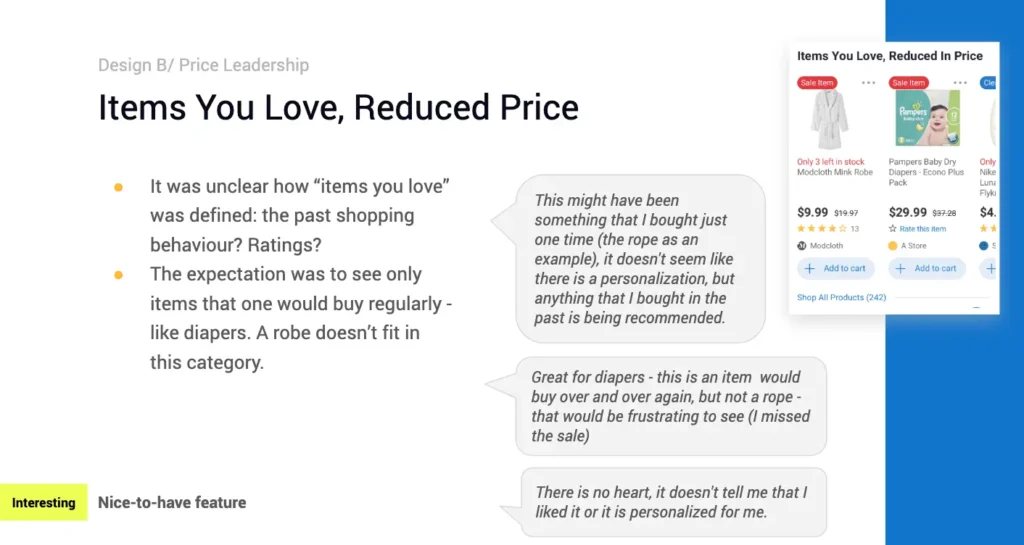 The biggest challenge we had was working with disjointed and remote teams: Walmart’s project team included multiple departments and decision makers with different objectives, design was done by an external agency, user research was the third stream.