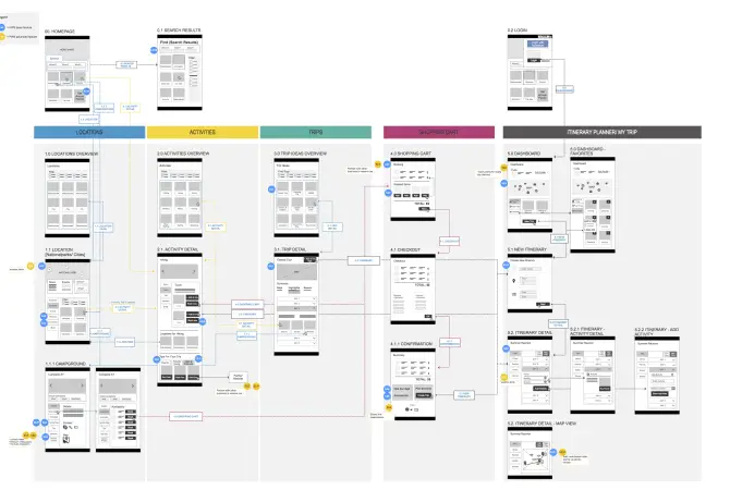 So in addition to a traditional sitemap and my wireframe document I created a “sitemap with wireframe-templates”: This sitemap showed each template that was necessary for the redesign as well as the cross-links. It was a very helpful delivery to keep a good communication.