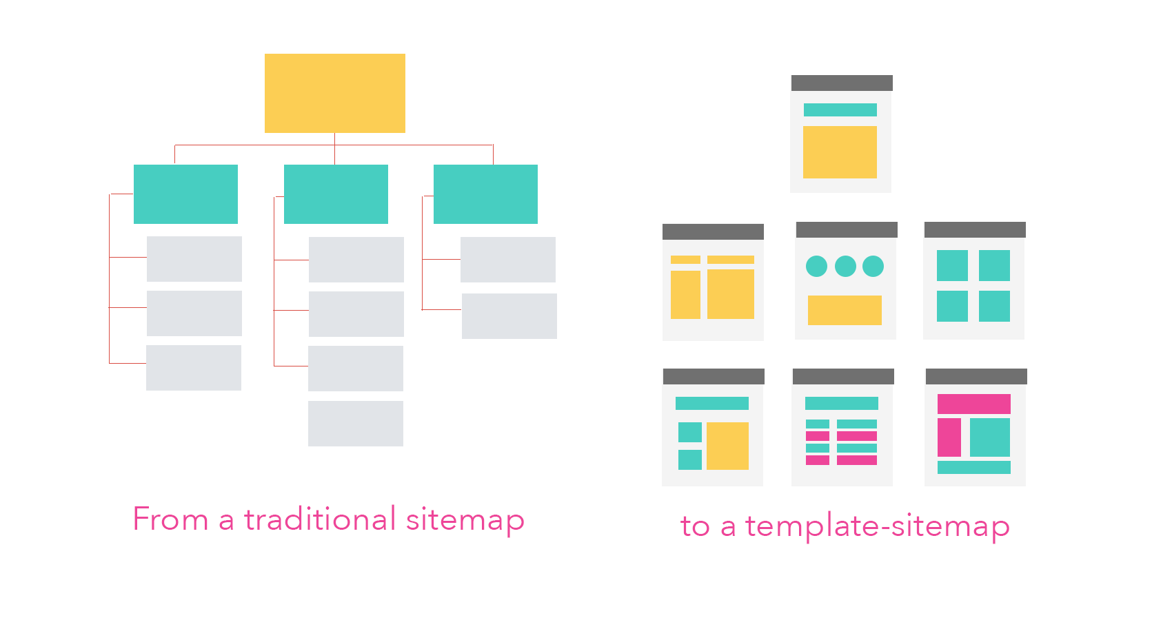 In this case I needed to hand out my wireframes as well as the sitemap. But the new concept of the website was a bit more complicated: the content did not follow a simple hierarchical structure but it was aggregated on different pages.